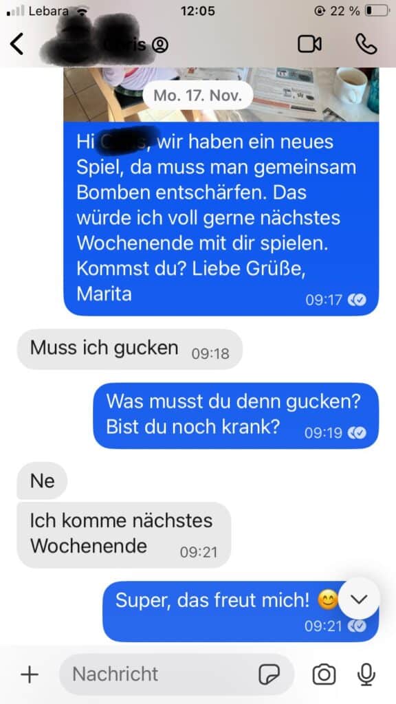 Was mir auffiel: Wenn ich ihm schrieb „Wir haben ein neues Spiel und würden uns freuen, es am Wochenende mit dir zu spielen“,
