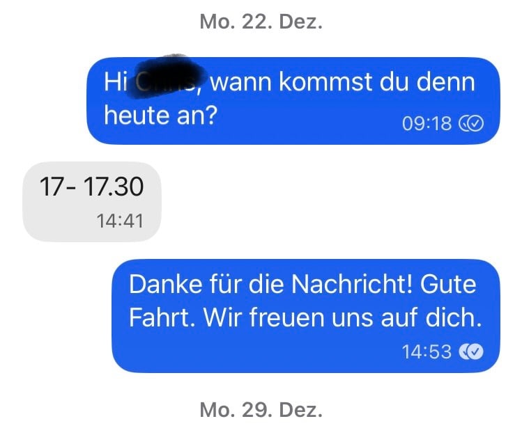 Zwischen den beiden „Hi“ liegt fast ein Monat. Auch das ist ok.